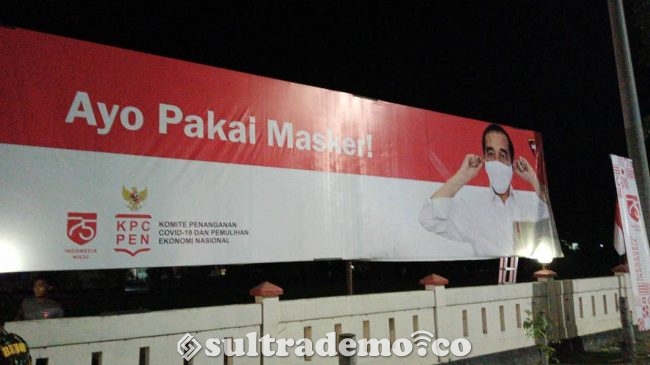 Instruksi Presiden, Polda Sultra Pasang Banner Ajak Warga “Ayo Pakai Masker”