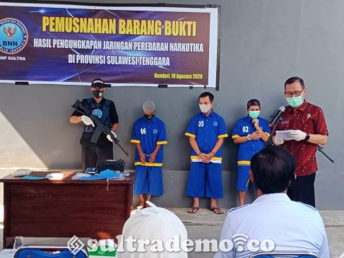 Kendari, Sultrademo.co – Badan Nasional Narkotika Provinsi (BNNP) Sulawesi Tenggara (Sultra) memusnahkan barang bukti (barbuk) ….