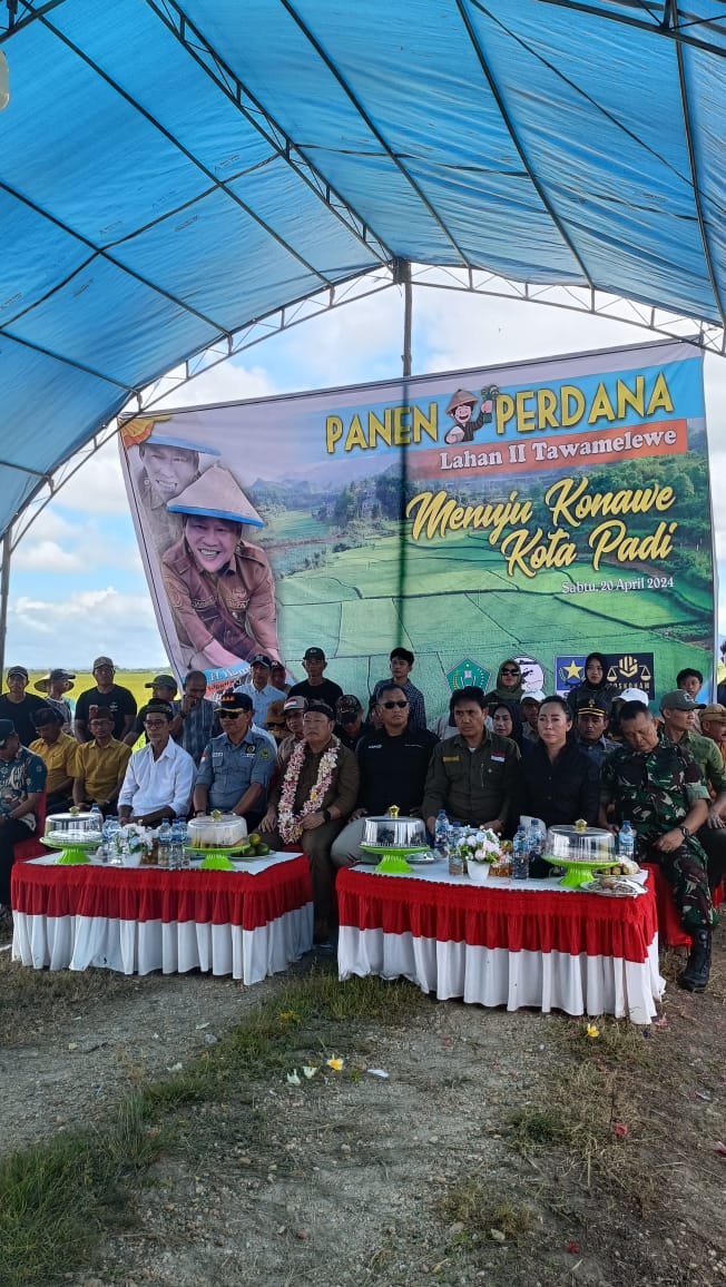 Panen ini dilakukan di desa Tawamelewe, Kecamatan Uepai dan dihadiri langsung oleh Pejabat (Pj) Bupati Konawe, Dr H. Harmin Ramba SE,. MM., di dampingi sekda Konawe serta bersama Kepala Dinasa Pertanian dan Ketahanan Pangan.