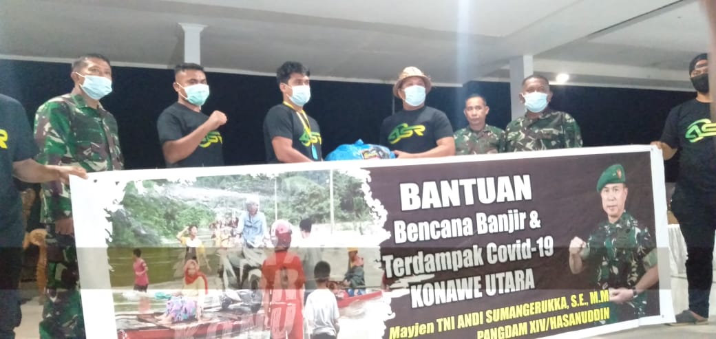 Melihat hal itu,Pangdam XlV/Hasanudin,Mayjen TNI Andi Sumangerukka,melalui perwakilan Andi Andriansyah menyalurkan bantuan banjir dan terdampak covid-19 di Konawe utara.selasa/23/06/2020,bertempat rujab Bupati Konawe Utara.