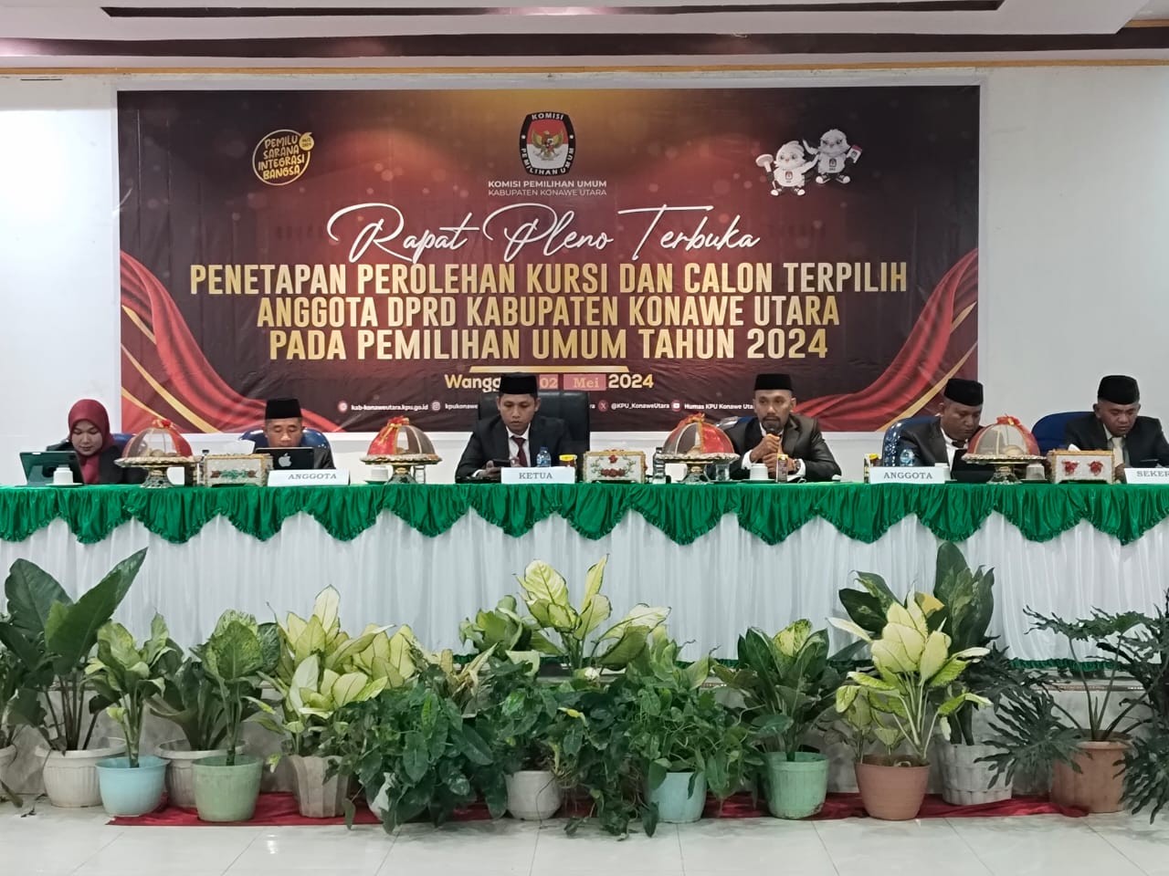 Pleno yang dipimpin oleh Ketua KPU Konawe Utara, Abdul Makmur, didampingi oleh anggota KPU lainnya, telah menegaskan hasil perolehan kursi dari pemilihan umum yang digelar pada 14 Februari 2024 lalu.