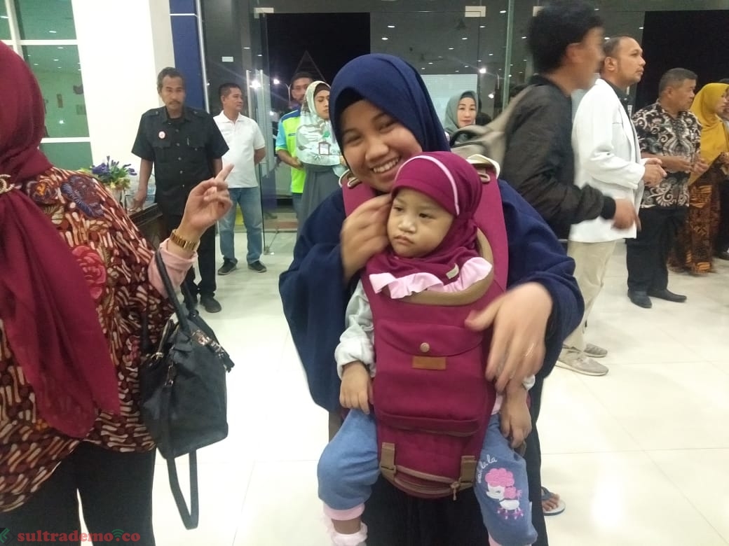 Kendari, Sultrademo.co – Pasca Operasi pemisahan dan perawatan 3 bulan 12 hari di Rumah sakit Umum Daerah ( RSUD) dr Soetemo, Surabaya, Jawa Timur, bayi Kembar siam asal kota Kendari dempet dada dan perut (thoracoabdomino phagus) Aqila dan Azila telah berada diKota Kendari. Jumat malam, (15/11/2019)