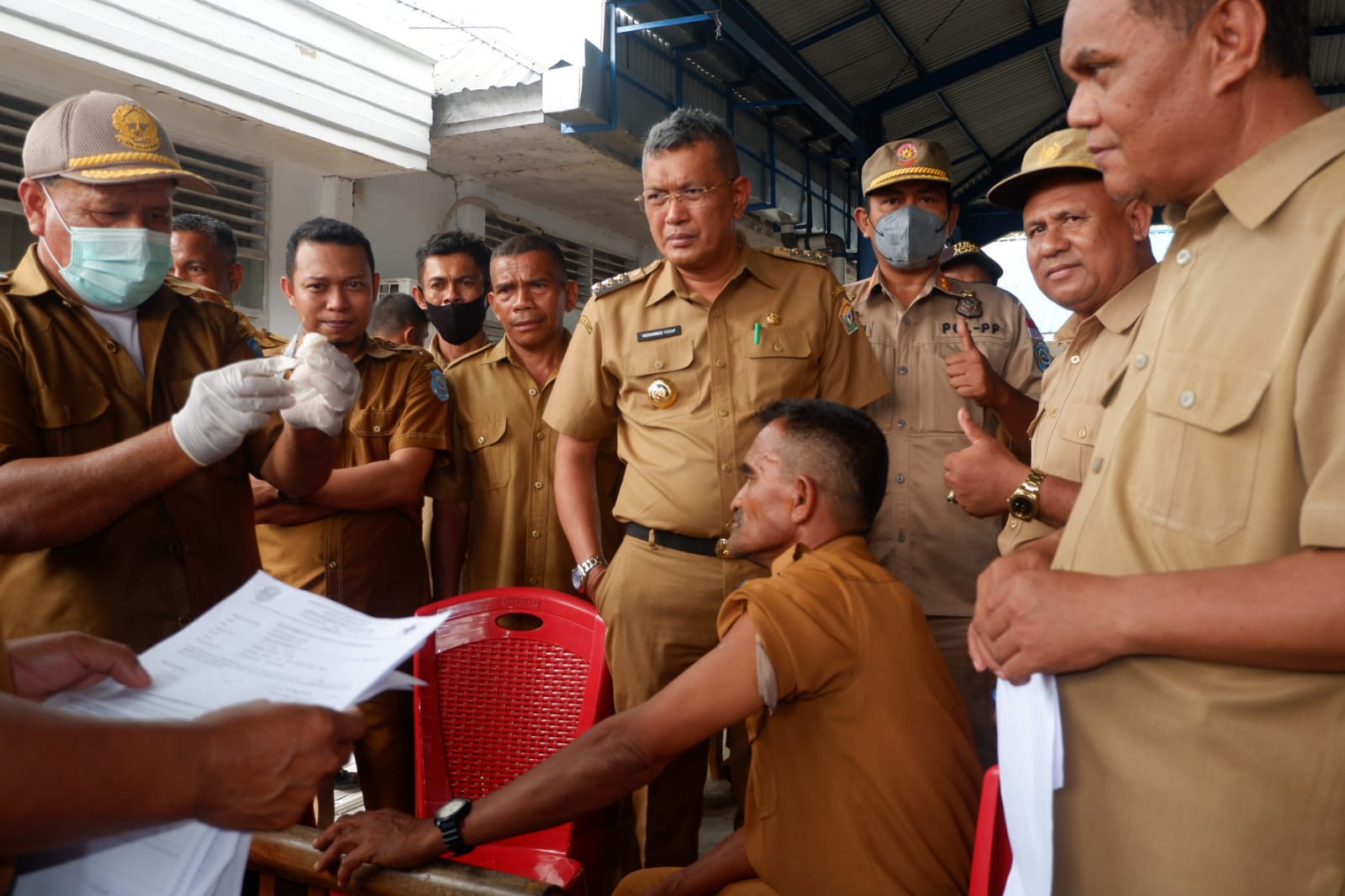 PJ Bupati Buteng Muhamad Yusup saat meninjau langsung pelaksanaan vaksinasi Booster kepada Aparatur Sipil Negara (ASN) di lingkup Pemkab Buteng, mengatakan pihaknya akan terus berinovasi agar capaian vaksinasi terus meningkat. Senin (01/08/2022).