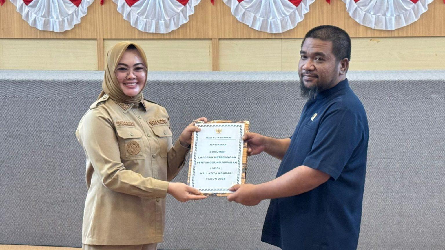Dalam forum resmi tersebut, Wali Kota Kendari, Siska Karina Imran, menyampaikan langsung pidato penjelasan LKPJ sekaligus menyerahkan dokumen laporan kepada DPRD sebagai bentuk pertanggungjawaban atas kinerja pemerintahan selama satu tahun terakhir.