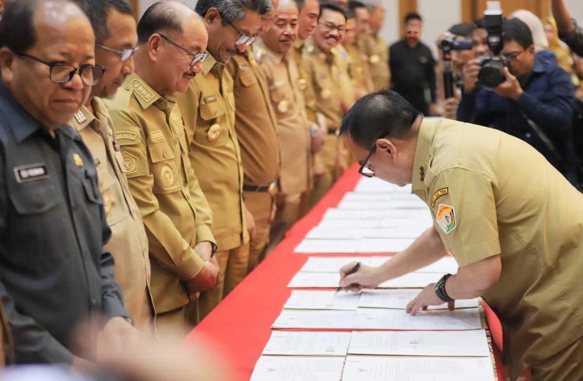 Kendari, Sultrademo.co – Pemerintah Provinsi Sulawesi Tenggara (Sultra) bersama seluruh Pemerintah Kabupaten/Kota se-Sultra telah menyepakati langkah strategis dalam optimalisasi Pendapatan Asli Daerah (PAD), khususnya dari sektor pajak daerah. Kesepakatan ini dituangkan melalui penandatanganan bersama yang dipimpin oleh Penjabat (Pj) Gubernur Sultra, Andap Budhi Revianto, di Kantor Gubernur Sultra pada 15 Oktober 2024.