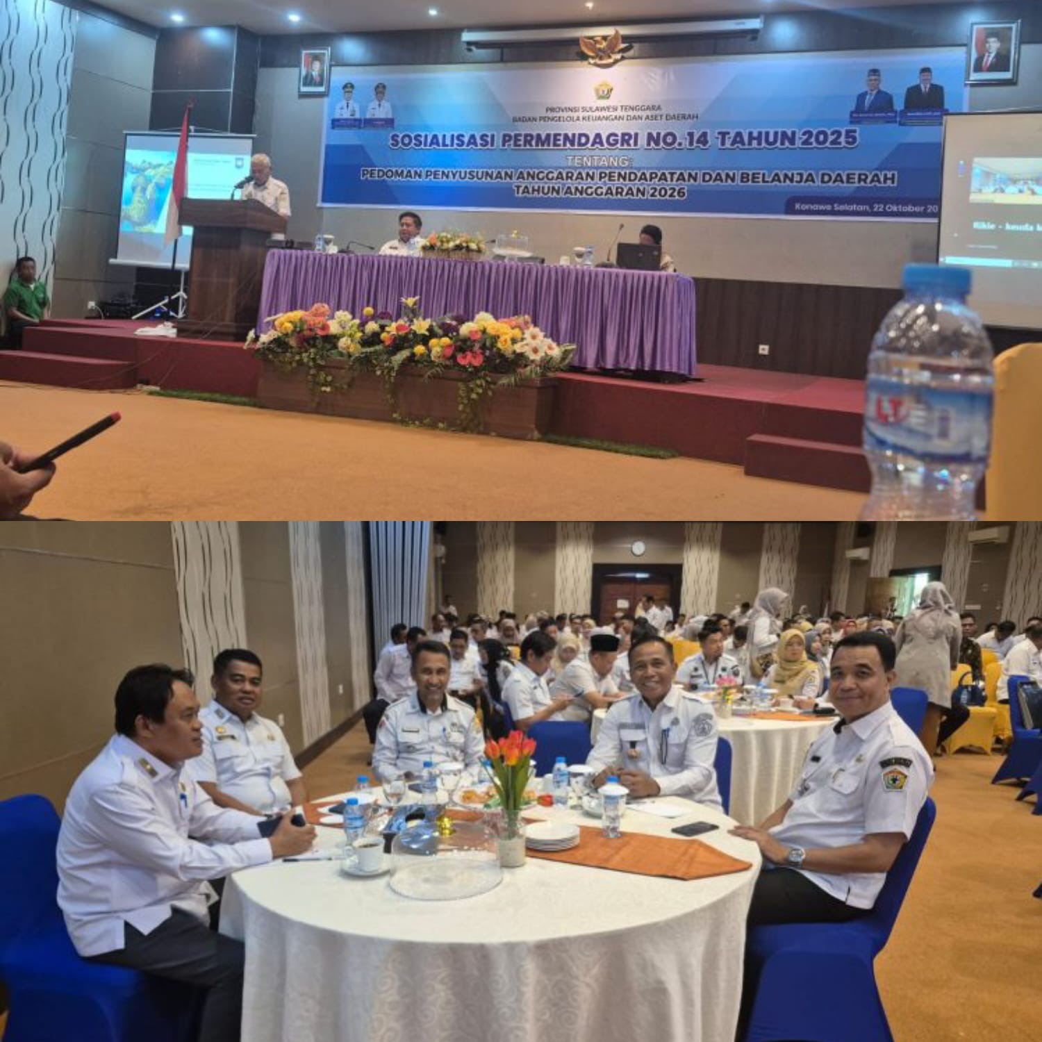 Penyerahan dilakukan dalam kegiatan Sosialisasi Permendagri Nomor 14 Tahun 2025 tentang Pedoman Penyusunan APBD 2026 di Kabupaten Konawe Selatan, Rabu (22/10/2025).