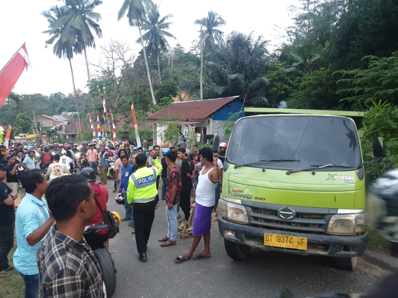 Mobil truck DT 9374 UF yang dikemudikan Andi Nurul Fauzan (23) melindas Korban yang mengendarai motor Yamaha Jupiter Z DT 3335 OF saat hendak menanjak.