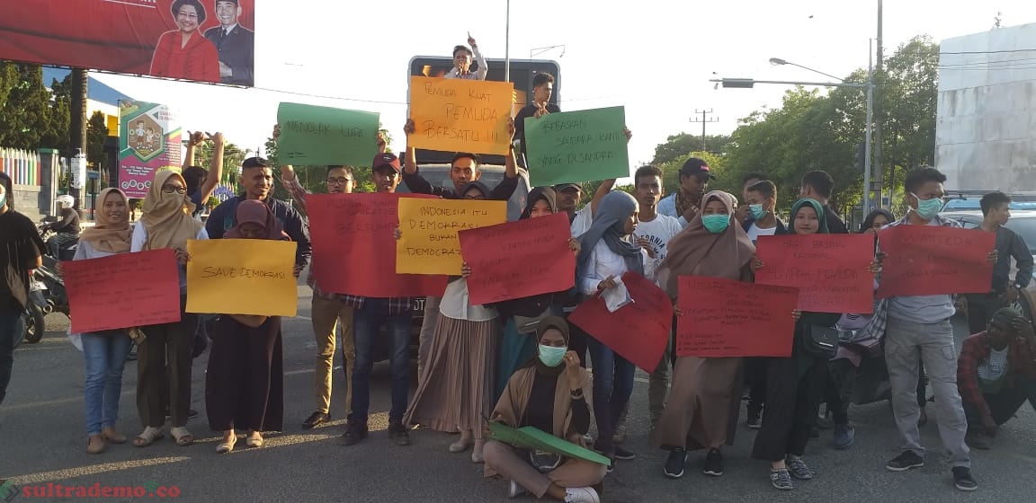 Kendari, Sultrademo.co (28/10) Memperingati hari sumpah pemuda, Puluhan orang yang tergabung dalam Aliansi Mahasiswa Wakatobi mendesak kepolisian untuk menuntaskan kasus kematian Randy dan Yusuf.