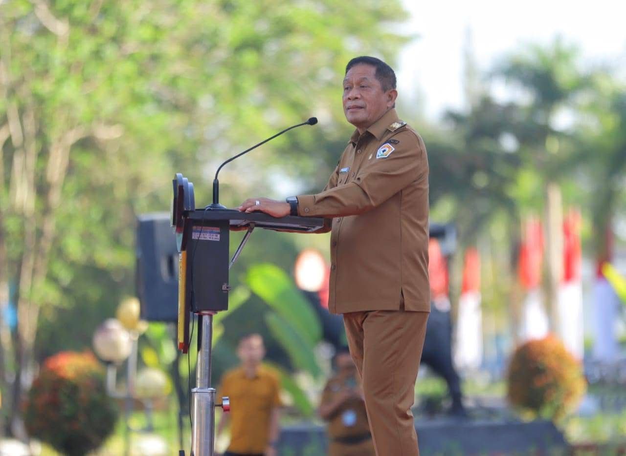 Kendari, Suktrademo.co – Wakil Gubernur Sulawesi Tenggara (Sultra), Ir. Hugua, memimpin Apel Gabungan Aparatur Sipil Negara (ASN) lingkup Pemerintah Provinsi Sultra di Lapangan Kantor Gubernur pada Senin (4/8/2025).