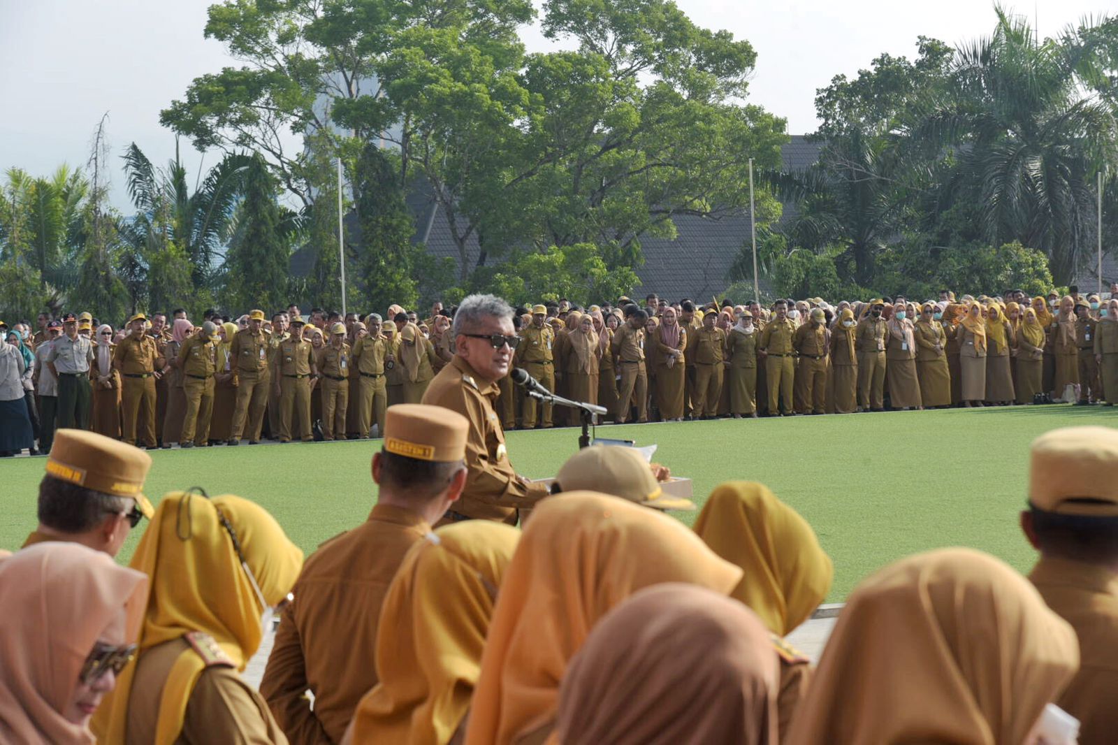 Kendari, Sultrademo.co – Ribuan Aparatur Sipil Negara (ASN) lingkup Pemerintah Kota (Pemkot) mengikuti apel gabungan di lapangan upacara Balai Kota Kendari yang di pimpin oleh Pj Wali Kota Kendari.