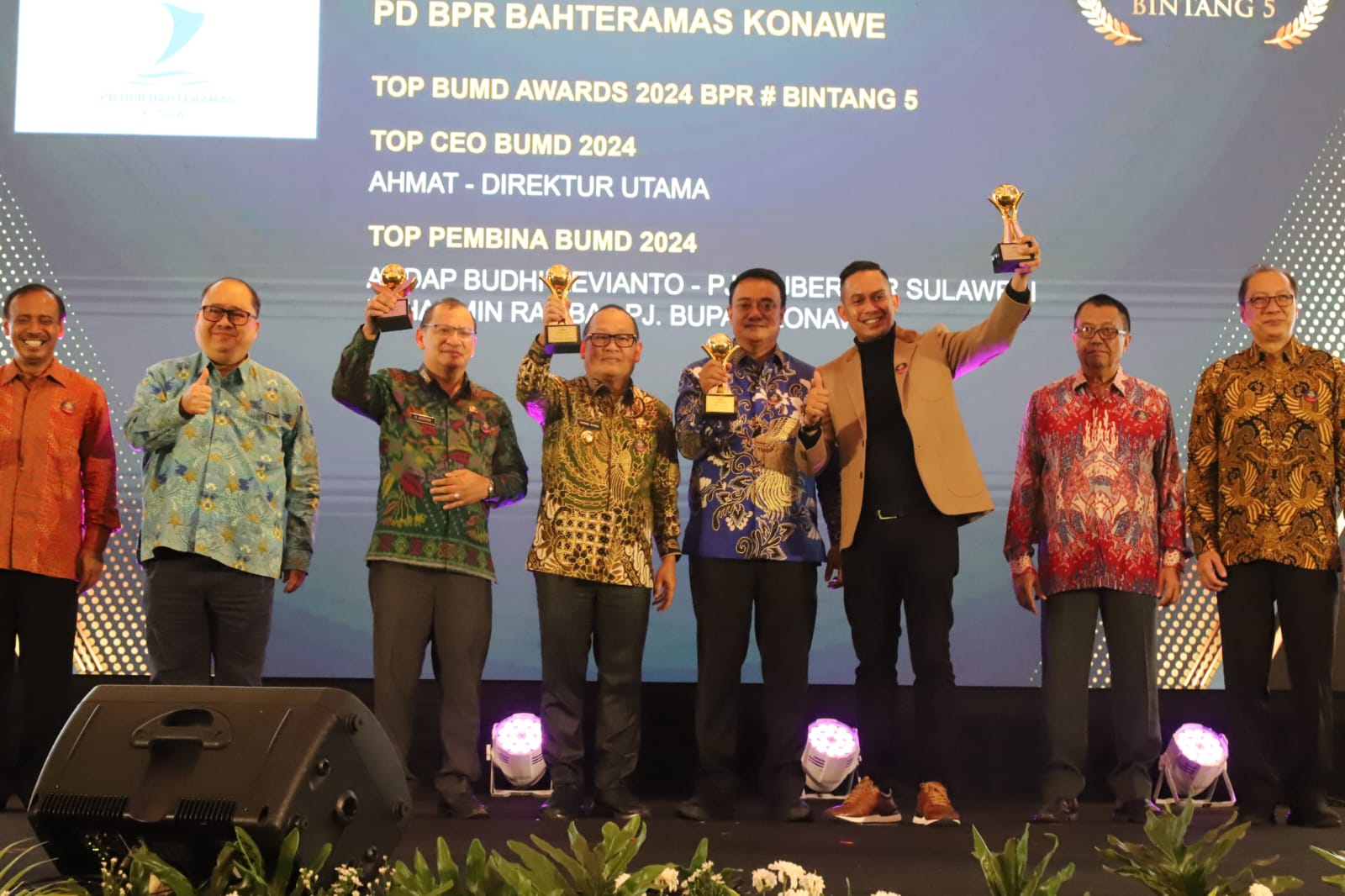 Berkat dukungan Pemerintah Daerah PD. BPR Bahteramas Konawe berhasil meyakinkan dewan juri Top BUMD Awards 2024 untuk kemudian menetapkan PD. BPR Bahteramas Konawe sebagai BUMD perbankan dengan predikat paripurna atau bintang 5 se-Indonesia.