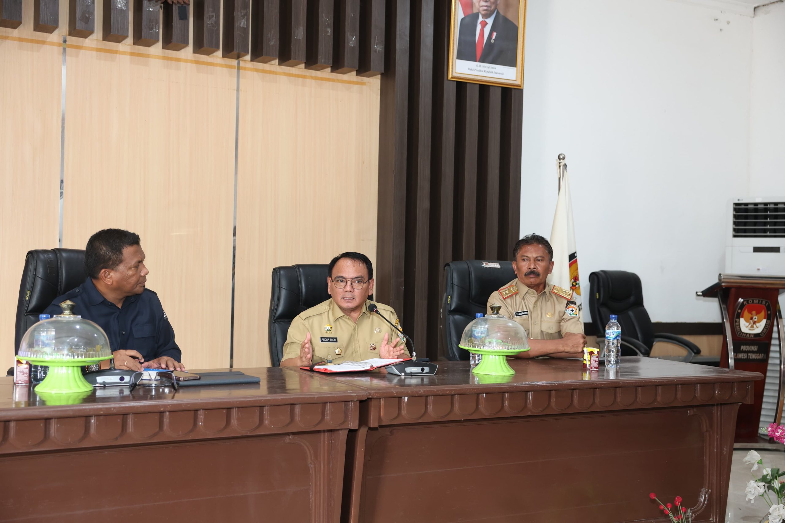 Usai melakukan kunjungan ke Kantor Bawaslu Sultra selanjutnya Andap didampingi Staf Ahli bidang Pemerintahan, Hukum dan Politik Pemprov Sultra La Ode Fasikin melakukan kunjungan ke Kantor KPU Sultra.