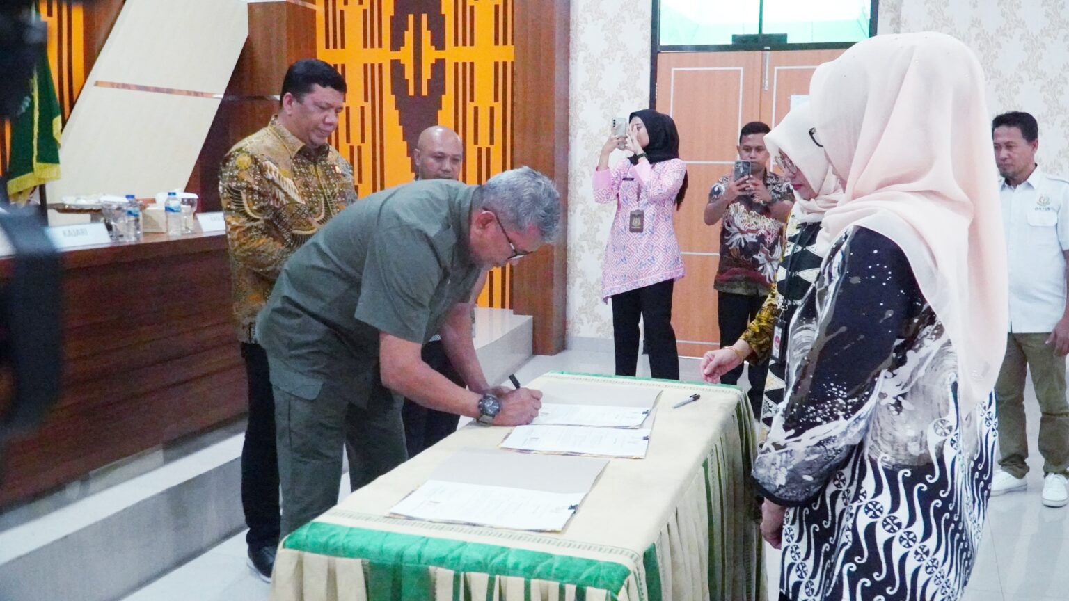 Acara penandatanganan kesepakatan ini tidak hanya dihadiri oleh Pj. Wali Kota Kendari, tetapi juga Asisten, Staf Ahli, dan seluruh Kepala Organisasi Perangkat Daerah (OPD) di lingkungan Pemerintah Kota Kendari. Kebersamaan mereka dalam momen ini menegaskan komitmen bersama untuk mendukung upaya penguatan hukum dan keadilan di Kota Kendari.