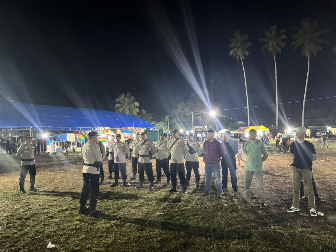 Sekitar pukul 21.00 Wita, aparat memperketat pengamanan di akses masuk lokasi hiburan. Polisi melakukan penyekatan dan pemeriksaan ringan terhadap warga serta tamu yang hadir, guna mencegah peredaran minuman keras, narkoba, dan senjata tajam.