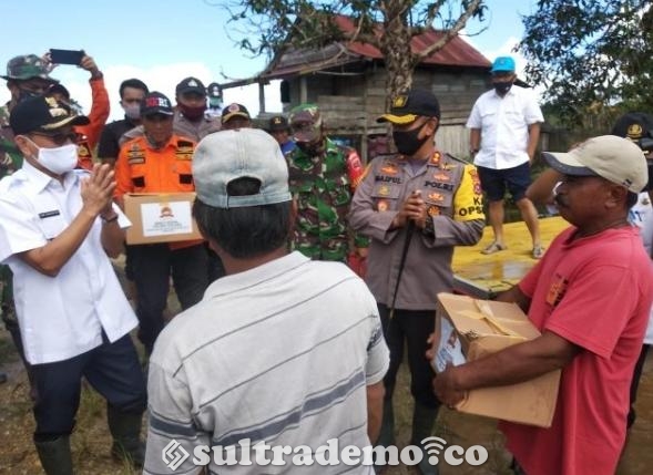 Koltim,Sultrademo.co – Kapolres Kolaka AKBP Saiful Mustofa, S.I.K M.Si dan jajarannya meninjau langsung keadaan lokasi bencana banjir