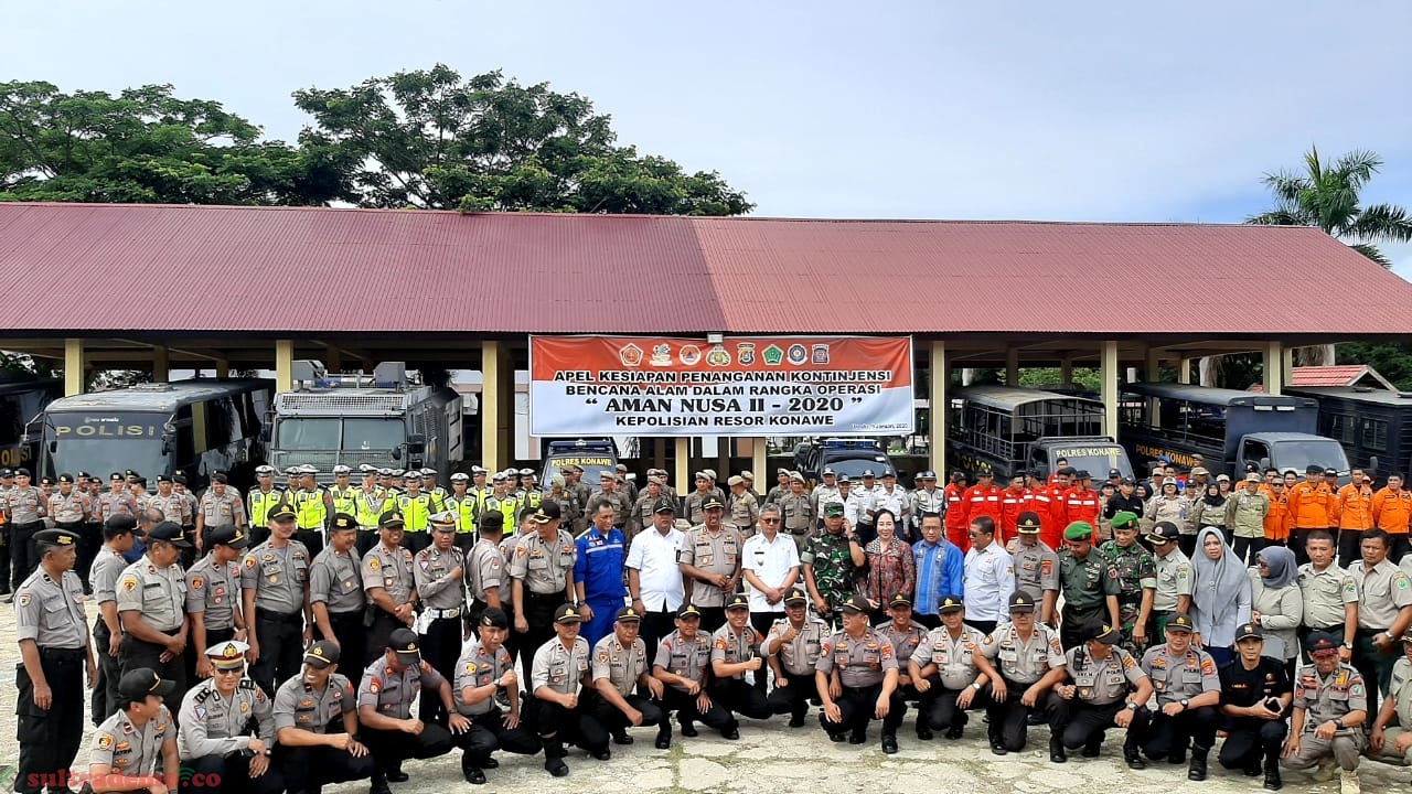 Konawe, Sultrademo.co– Memasuki musim penghujan dan cuaca ekstrim. Polisi Resor Konawe melaksanakan operasi Aman Nusa 2-2020 yang dimulai dengan apel kesiapsiagaan penanganan bencana alam di halaman Mapolres Konawe. Kamis (9/1/2020).
