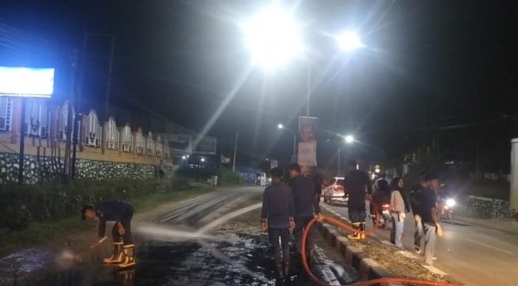Kondisi jalan yang licin membuat warga khawatir akan potensi kecelakaan lanjutan. Laporan pun langsung masuk ke layanan 112, dan tidak butuh waktu lama, petugas dari Dinas Pemadam Kebakaran dan Penyelamatan Kota Kendari segera diterjunkan ke lokasi.