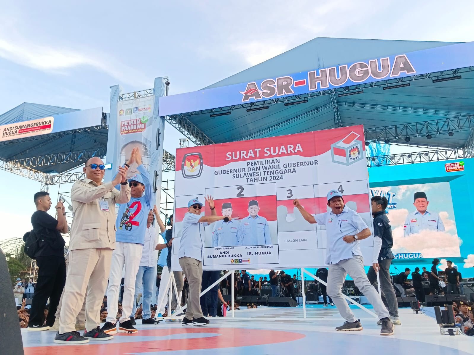 Kendari, Sultrademo.co – Pasangan calon gubernur dan wakil gubernur Sulawesi Tenggara (Sultra), Andi Sumangerukka (ASR) dan Ir. Hugua, sukses menyelenggarakan acara “Pesta Rakyat Berkah Part I” di Lapangan Benu-Benua, Kendari, pada Sabtu (9/11/2024).