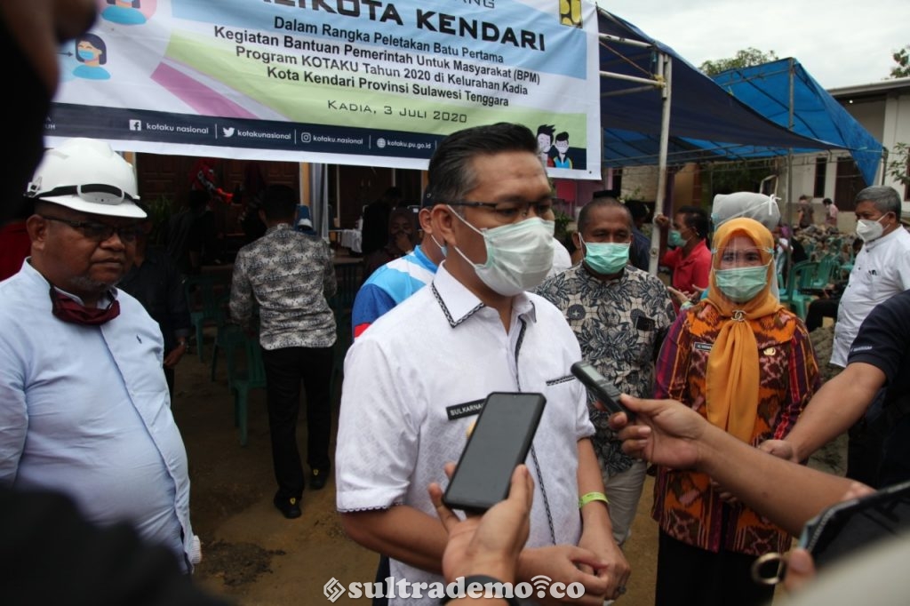 Kendari, Sultrademo.co – Wali Kota Kendari Sulkarnain Kadir kembali mengunjungi lokasi peletakan batu pertama pekerjaan Program Kota Tanpa Kumuh ( KOTAKU) di Kelurahan Kadia Kecamatan Kadia Kota Kendari sekaligus menyerahkan dana batuan program Kotaku. (Jumat, 03/07/2020).