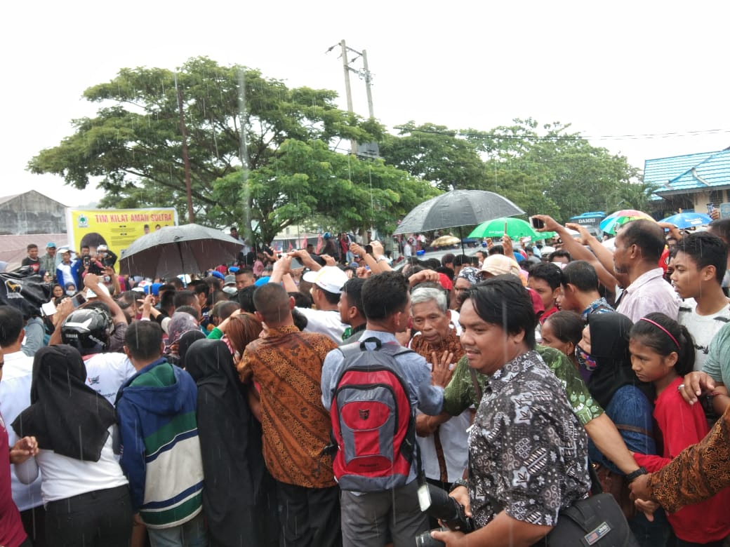 Meski diguyur hujan, Presiden bersama ibu Iriana setiba di lokasi disambut histeris ribuan masyarakat yang berlomba-lomba menyalimi dan mengerumuni orang nomor satu di Indonesia itu.