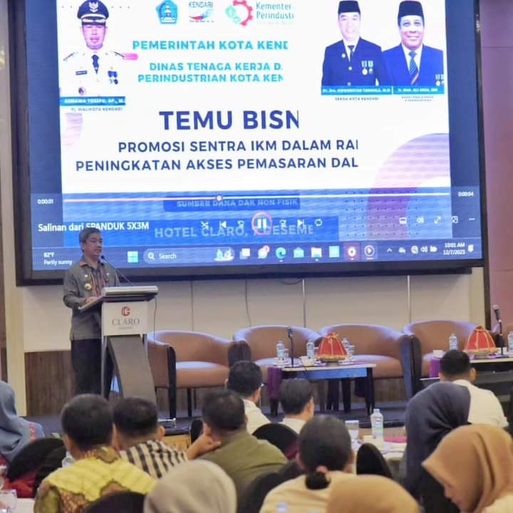 Kendari, Sultrademo.co – Sekretaris Daerah (Sekda) Kota Kendari, Ridwansyah Taridala membuka sekaligus menjadi narasumber dalam temu bisnis promosi sentra IKM di salah satu hotel di Kota Kendari, Kamis (7/12/2023).