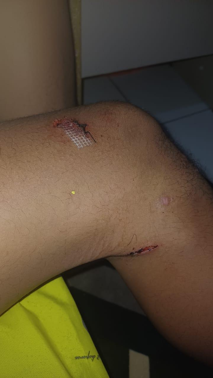 MCA yang sempat oleng akibat hantaman botol masih berusaha menahan serangan sajam tersebut. Akibatnya, lutut serta telapak tangan kanannya mengalami luka sobek sebelum akhirnya ia berhasil menyelamatkan diri.
