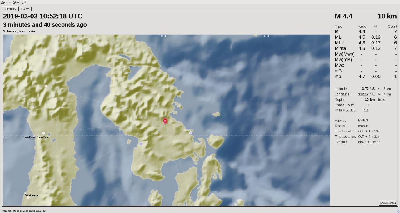 Hingga pukul 19.10 WITA, hasil monitoring BMKG menunjukkan belum terjadi aktivitas gempabumi susulan.