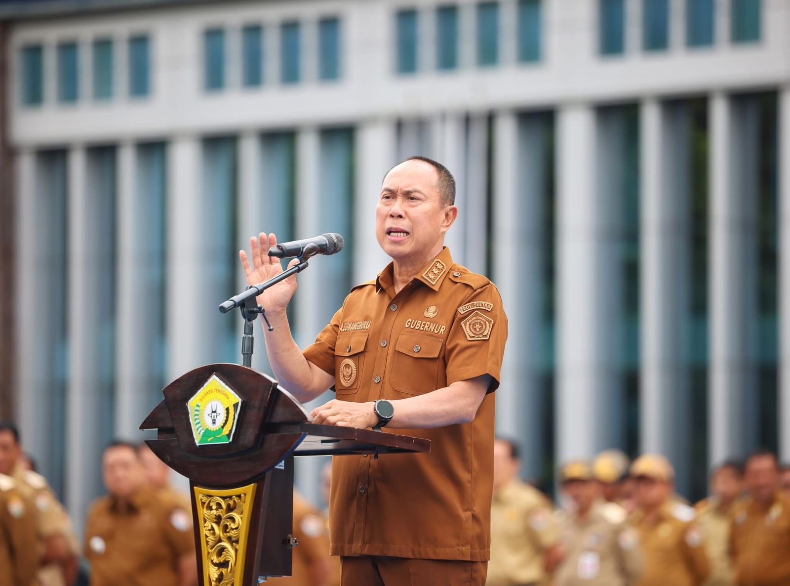 Kendari, Sultrademo.co – Gubernur Sulawesi Tenggara, Mayjen TNI (Purn.) Andi Sumangerukka, memimpin apel gabungan lingkup Pemerintah Provinsi Sultra yang berlangsung di Lapangan Kantor Gubernur, Senin (8/9/2025).