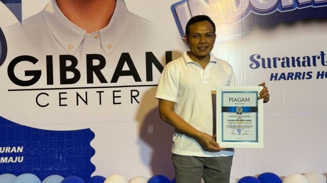 Solo, Sultrademo.co – Ketua DPW Gibran Center Sulawesi Tenggara (Sultra), Yusran Akbar menerima piagam penghargaan ….