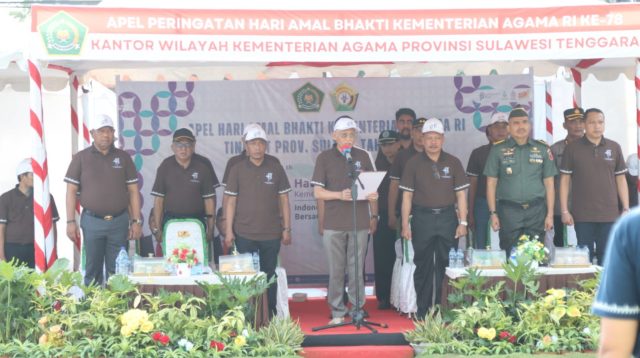 Kendari, Sultrademo.co – Pelaksanaan apel Hari Amal Bhakti (HAB) ke 78 di Kantor Wilayah Kementrian ….