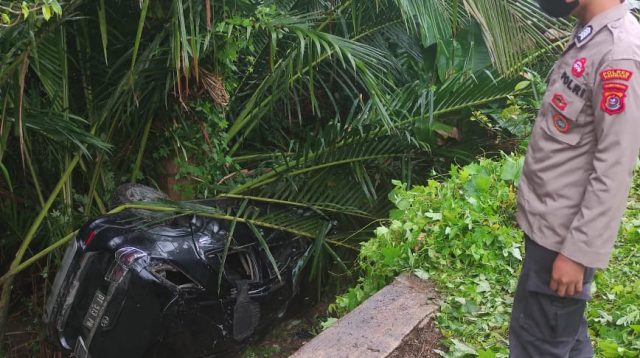 Akibat Jalan Licin, Toyota Fortuner Alami Lakalantas Hingga Jatuh Ke Jurang