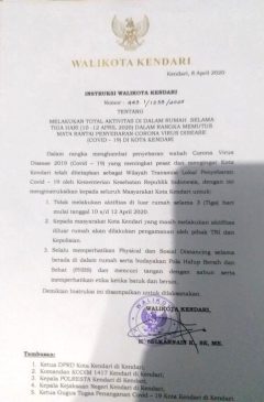 Walikota Kendari Larang Warga Beraktifitas Di Luar Rumah Selama 3 Hari