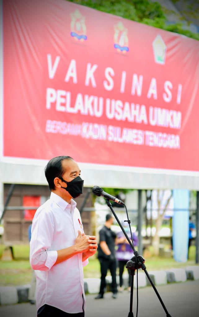 Hal tersebut disampaikan Presiden Joko Widodo saat memberikan keterangan selepas meninjau pelaksanaan vaksinasi Covid-19 massal yang digelar di halaman Kantor Gubernur Sulawesi Tenggara, Kota Kendari, Rabu, (30/06).