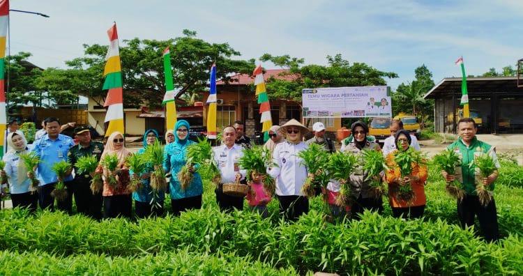 Sebelum dialog dimulai, Wali Kota bersama Ketua TP PKK, Forkopimda, dan peserta kegiatan melakukan panen sayuran di halaman Kantor Dinas Pertanian. Para peserta dipersilakan memanen kangkung, bayam, terong, dan tomat secara gratis—semua berasal dari kebun yang dikelola karyawan Dinas Pertanian.