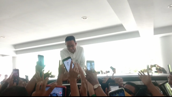 Setibanya dilokasi Anies langsung disamput sorakan dangan riang gembira oleh pendukung dan simpatisan.