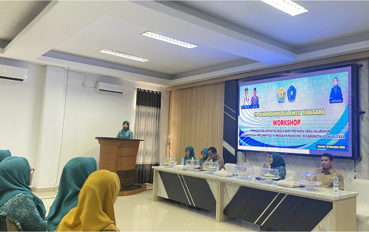Kolaka Utara, Sultrademo.co – Tim Penggerak Pemberdayaan dan Kesejahteraan Keluarga (TP PKK) Kabupaten Kolaka Utara menggelar workshop peningkatan kapasitas untuk kader Posyandu dari desa dan kelurahan, Selasa (12/11/2024).