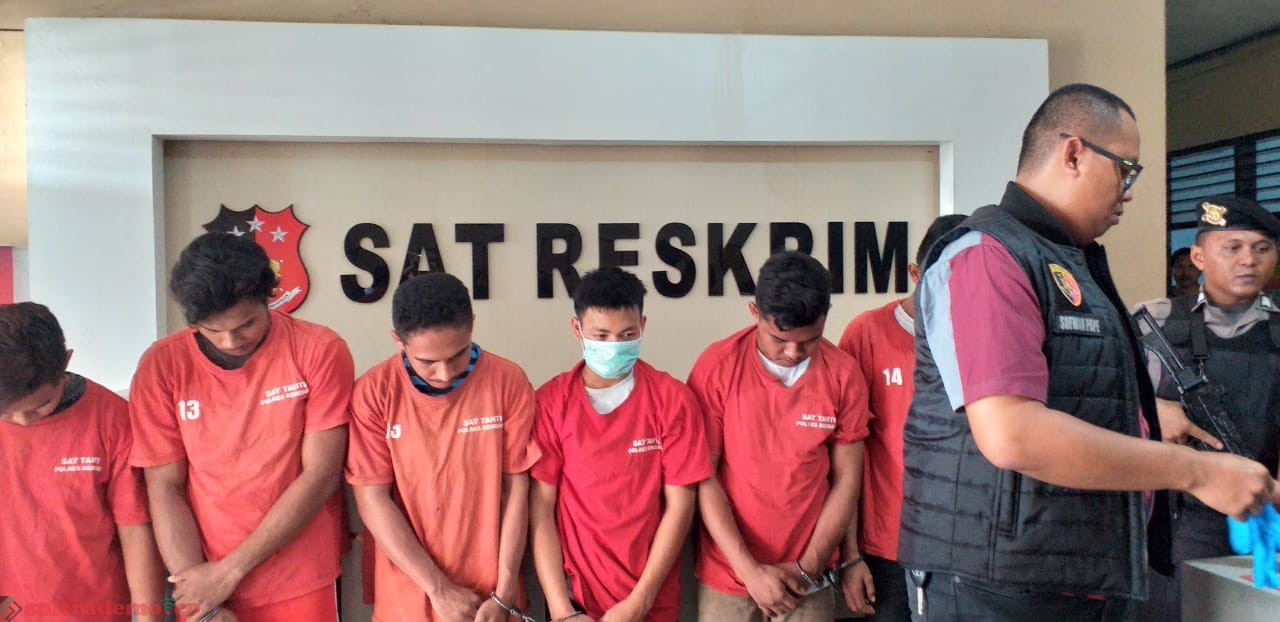 Mereka ditangpak seusai mengeroyok tiga orang pegawai dan merampas Hp Oppo F3 milik korban di Hotel Ghani di Jalan Mekar Indah, Lorong Krupuk, Kelurahan Kadia, Kecamtan Kadia, Kota Kendari. Selasa (19/11/19) lalu.