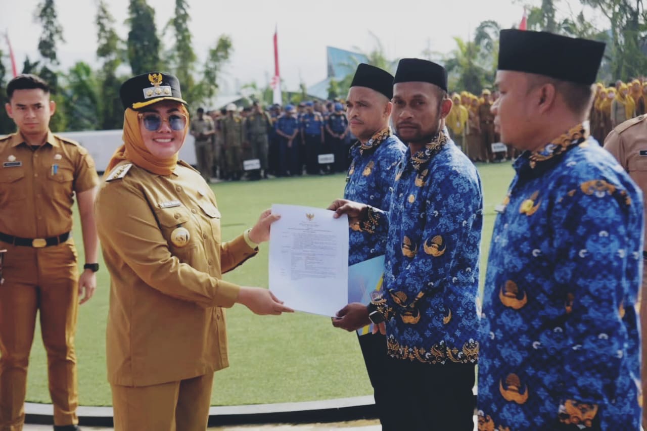 Kendari, Sultrademo.co – Wali Kota Kendari, dr. Hj. Siska Karina Imran, SKM, memimpin apel gabungan sekaligus menyerahkan Surat Keputusan (SK) kepada 407 Pegawai Pemerintah dengan Perjanjian Kerja (PPPK) Tahap I Formasi Tahun 2024. Kegiatan ini berlangsung di Lapangan Upacara Kantor Balai Kota Kendari, Senin (11/8/2025).