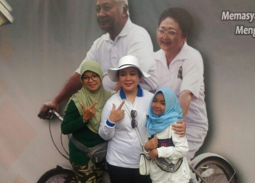 Ada yang tak biasa di areal car free day (CFD) di jalan Jenderal Sudirman/MH Thamrin Jakarta, Minggu 24 Maret 2019, yaitu poster besar Presiden Soeharto dan Ibu Tien bersepeda, dan orang-orang berebut berfoto di depannya bersama Siti Hediati Hariyadi, putri kedua almarhum Pak Harto yang akrab di masyarakat dengan panggilan Titiek Soeharto.
