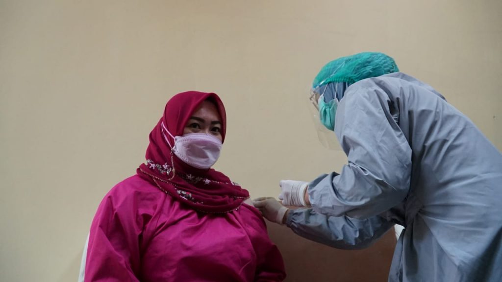 Kendari, Sultrademo.co – Wakil Wali Kota Kendari Siska Karina Imran melakukan vaksin tahap pertama di Rumah Sakit Umum Daerah Kota Kendari, Kamis (4/3/2021).